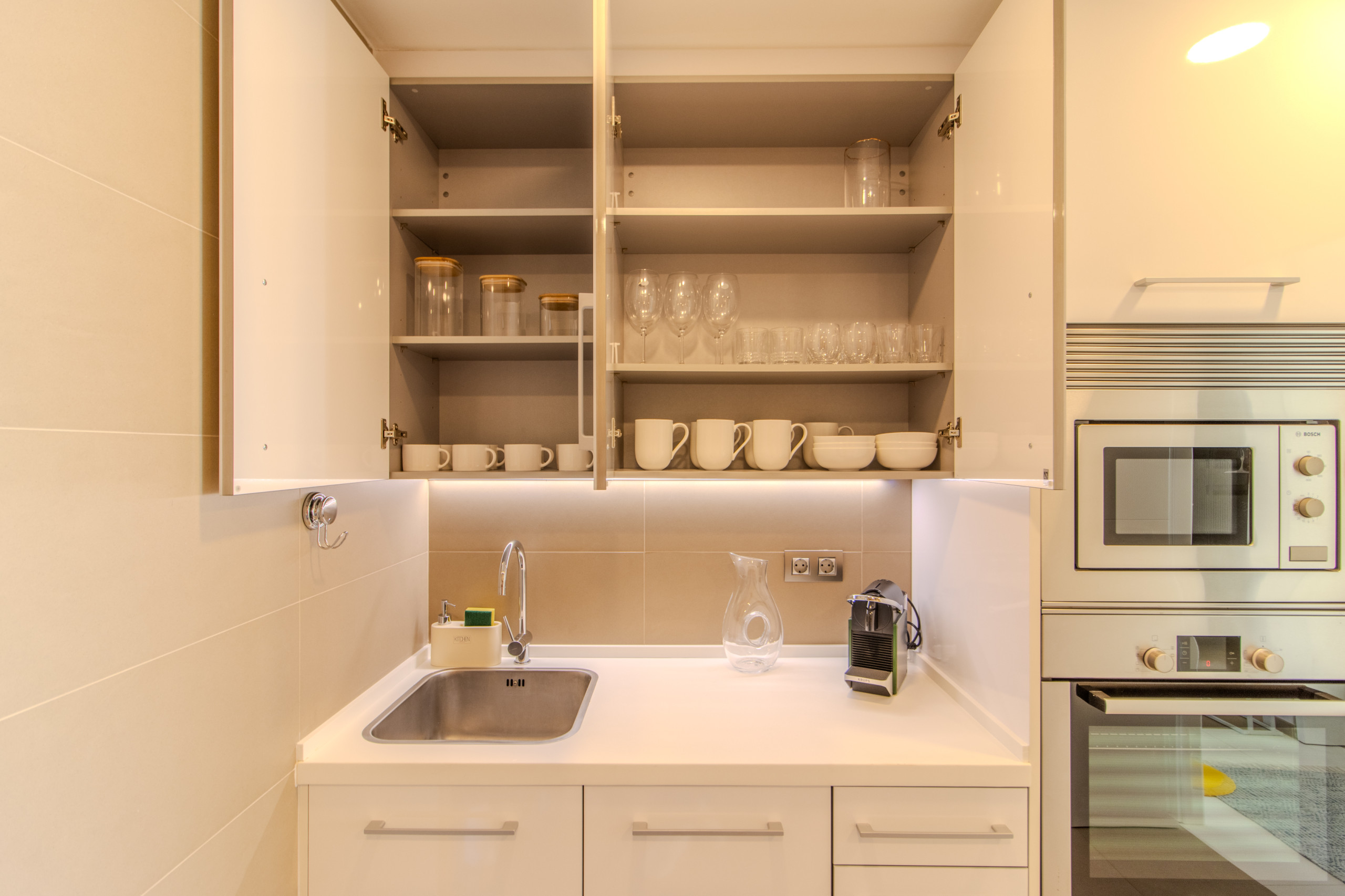La cocina independiente, de vitrocerámica, está equipada con nevera, microondas, horno, congelador, lavavajillas, vajilla/cubertería, utensilios/cocina, cafetera y tostadora.